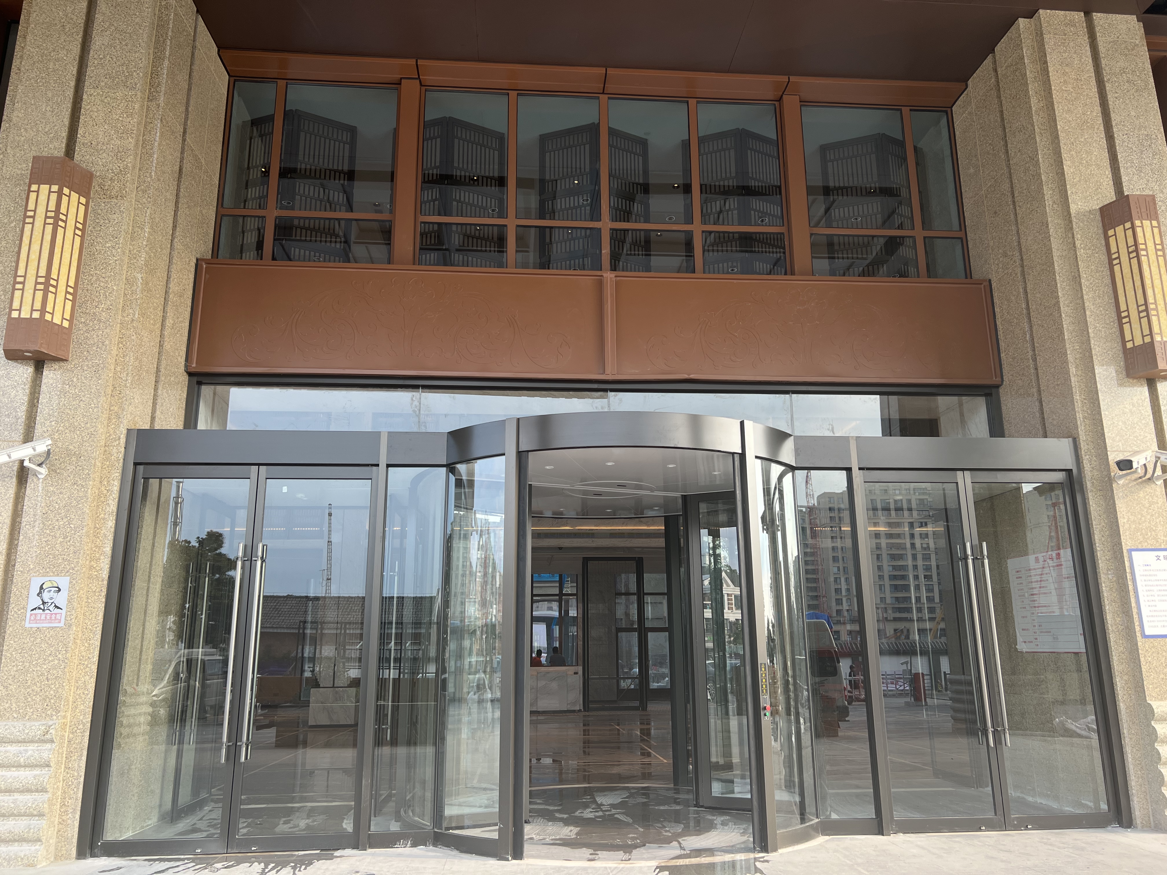 兩翼旋轉門,是建筑入口處的經典裝飾與實用設施。它以對稱的兩翼結構,平穩而優雅地旋轉,實現人員順暢通行與分流。融合先進科技,具備安全感應功能,遇阻即停。外觀造型大氣美觀,采用品質金屬與玻璃材質,彰顯品質,為建筑增添非凡氣質。